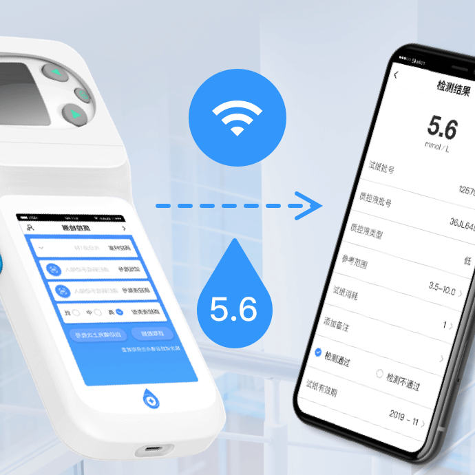 檢測結果通過藍牙、WIFI自動傳輸至移動端及服務器 Automatic transfer of results to mobile terminals and servers via Bluetooth or WiFi