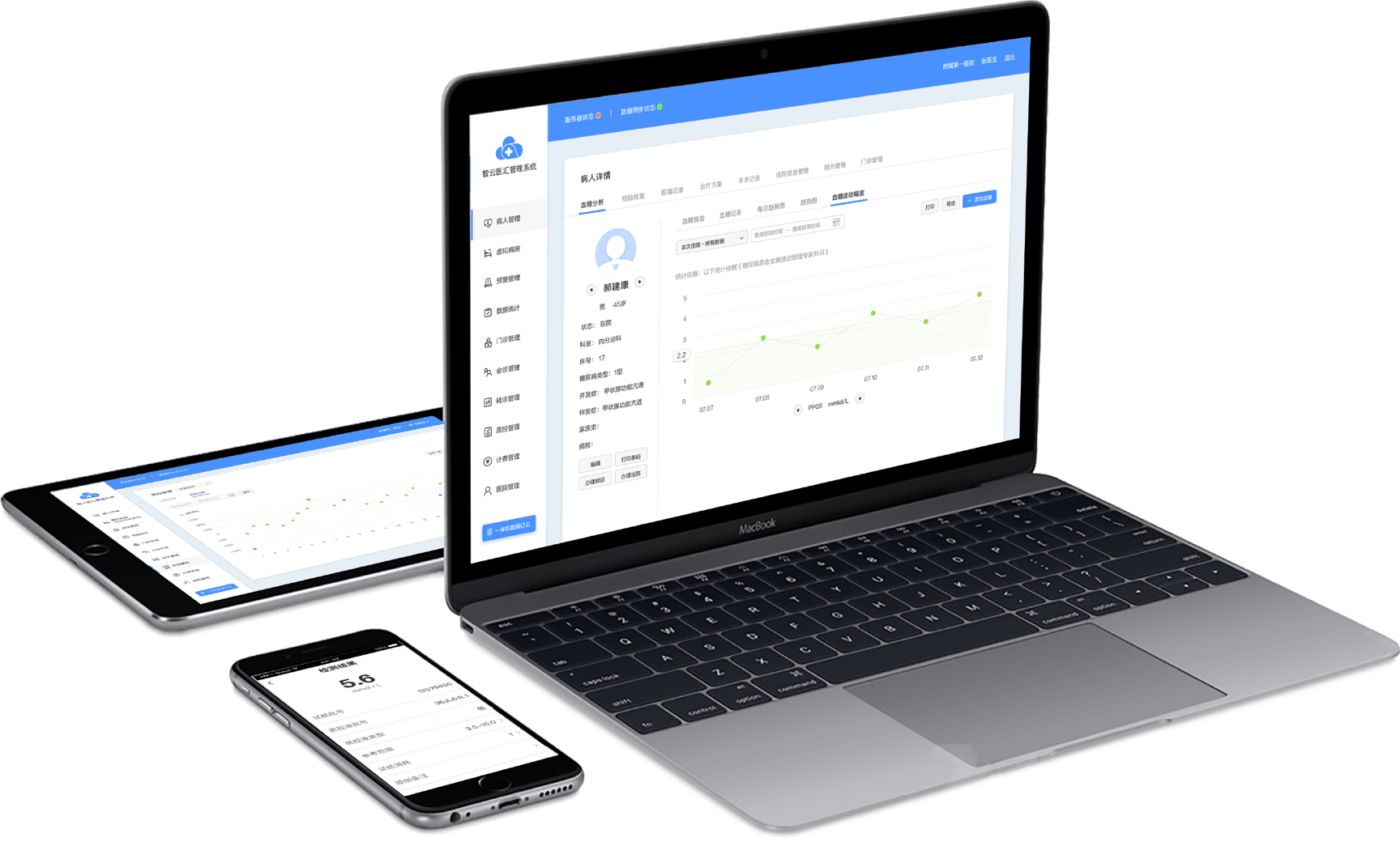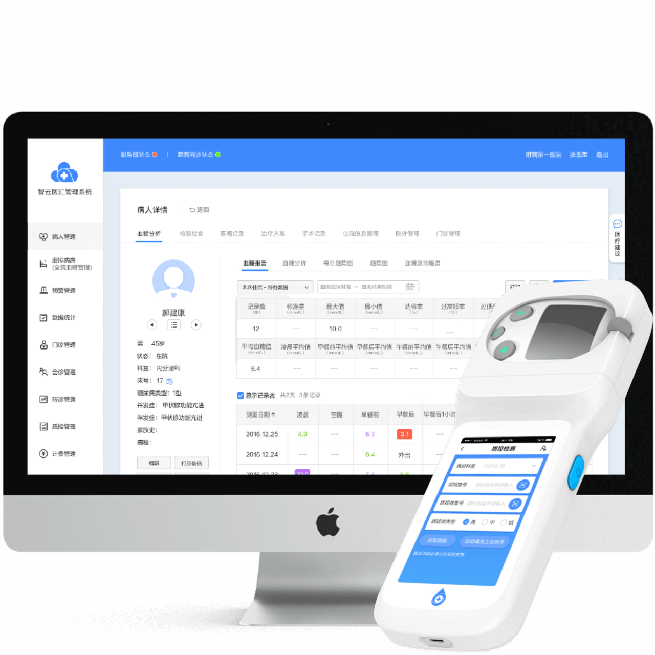 通過對數據的權限分類,院內醫護可隨時隨地查看對應患者的血糖數據 Based different data permissions,doctors and nurses can check blood sugar data of patients in the system